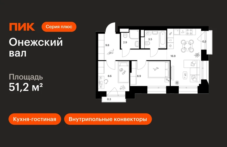В районе Западное Дегунино продаётся 2-комнатная квартира квартира площадью 51.2 на 11 этаже 18 этажного дома (корпус 1.1.3, секция 3) в проекте ПИК «Онежский вал». Удобное расположение 10 минут пешком до станции метро «Селигерская» и 15 минут до МЦД «Моссельмаш». 2 минуты на автомобиле до Дмитровского шоссе и 10 минут до МСД и СВХ. 11 минут пешком до парка им. Святослава Фёдорова и 15 минут до Орловского сада. Особенности проекта «Онежский вал» — проект «Серии плюс» с продуманной архитектурой, навеянной северной природой. Квартал с собственной инфраструктурой в развитом районе: всё для комфортной жизни будет в шаге от дома. А удобные и разнообразные планировки позволят каждому выбрать квартиру под собственные предпочтения. Преимущества проекта: Отделка: Готовая Особенности планировки: Кухня-гостиная, Два и более санузла, Французский балкон, Внутрипольные конвекторы Дизайнерские лобби с быстрыми и тихими лифтами, зонами ожидания и колясочными. Детский сад на 350 мест, школа для 800 учеников и современная поликлиника на территории проекта. Физкультурный комплекс с бассейном и деловой центр с офисами и ретейлом. Пешеходный бульвар для прогулок и отдыха. Дворы-парки с местами для отдыха, детскими и спортивными площадками. Торговые аллеи с магазинами, кафе и полезными сервисами на первых этажах домов. Подземный двухуровневый паркинг и две наземные парковки. АртикулО застройщике