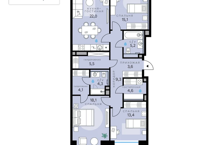 В продаже — трехкомнатная квартира, общей площадью 105,2 кв. м. Квартира расположена на восьмом этаже девятиэтажного корпуса Балансд в квартале В14 нового района СберСити, который строит Сбер. Архитектуру корпусов кварталов разработало итальянское бюро. В облике отражена природная палитра: для фасадов выбраны небесно-голубой и травянистый зелёный оттенки. Декоративные металлические рамы окон и эркеры служат выразительными акцентами. Из окон открываются виды на парк и закаты над рекой. Всего в трёх минутах пешком — набережная, а рядом — главный парк СберСити. Во дворах без машин — много зелени, деревьев, кустарников и многолетних растений, детские площадки и тихие зоны отдыха. Дом возводится по технологии монолитного строительства. Фасады отделываются терракотовыми и алюминиевыми композитными панелями. В квартирах будет установлена система «умный дом», объединяющая управление квартирой, домом и прилегающей территорией. Жильцы смогут регулировать климат и освещение голосом или со смартфона, а также управлять сценариями освещения по заданным параметрам. Повышенная шумоизоляция и двухкамерные стеклопакеты с алюминиевым профилем обеспечивают комфорт и тишину. В доме предусмотрены: – уютное лобби, – лапомойка, – колясочная и велосипедная комната на первом этаже, – подземный паркинг. СберСити — это новый жилой и деловой район на западе Москвы, в одном из самых экологически чистых и престижных мест столицы. Это первая в России и крупнейшая в мире инновационная городская среда, созданная по международным стандартам зелёного проектирования. Здесь внедряются решения в области энергоснабжения, вакуумного мусороудаления, тестирования зелёных технологий, а в дальнейшем — системы искусственного интеллекта для управления домами и городской инфраструктурой. Строительство проекта началось в 2021 году, заселение первых корпусов — с лета 2024-го. Общая площадь территории — 461 га, из них более 2,5 млн кв. м жилья и около 833 тыс. кв. м офисных пространств. Будет построено 7 школ, 13 детских садов и 2 поликлиники. В СберСити будут жить 65 тыс. человек и работать 70 тыс. Развитием территории занимается АО «Рублёво-Архангельское», входящее в группу Сбер. СберСити — место, где хочется жить, работать и растить детей. Переезжайте в СберСити!О застройщике