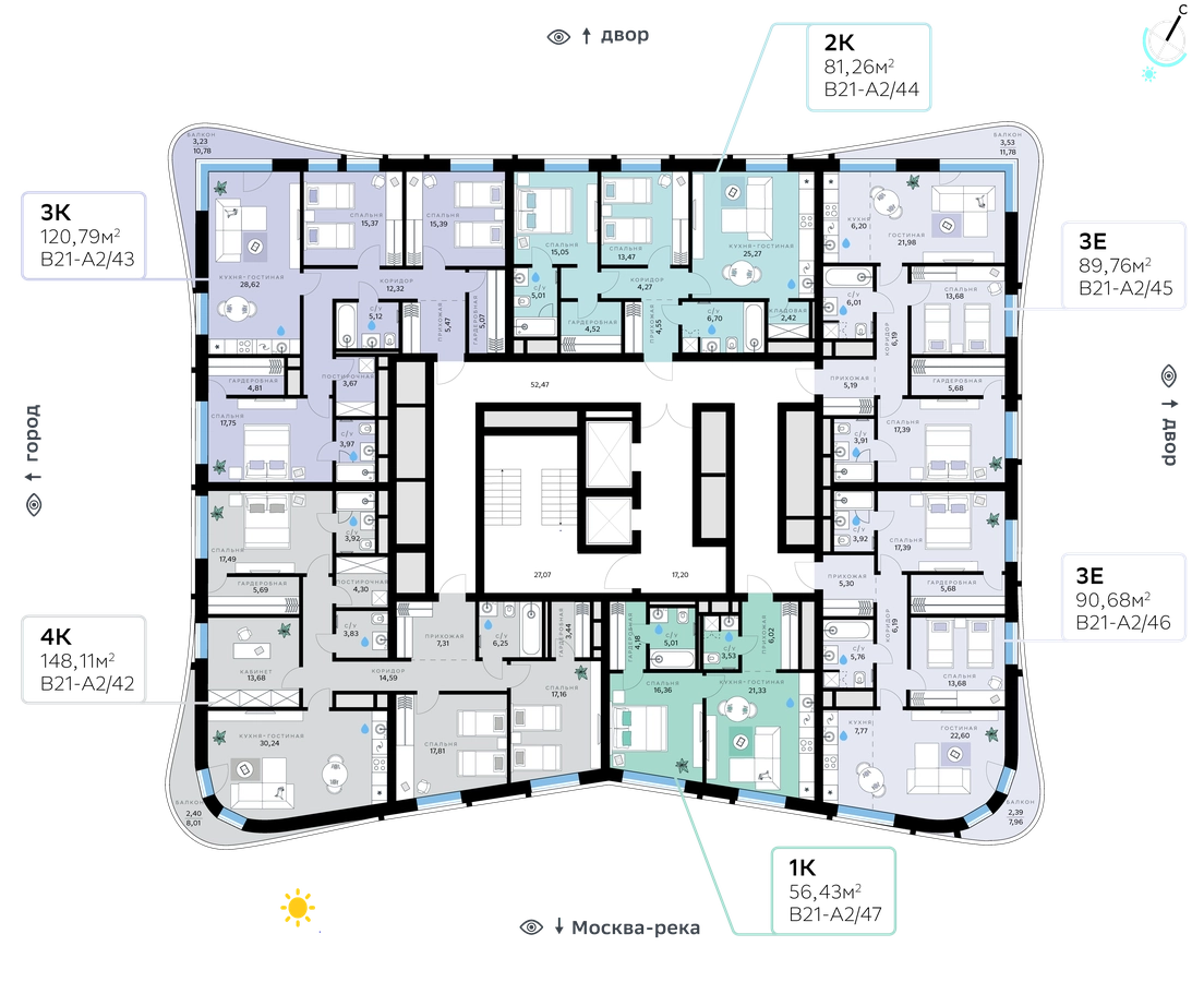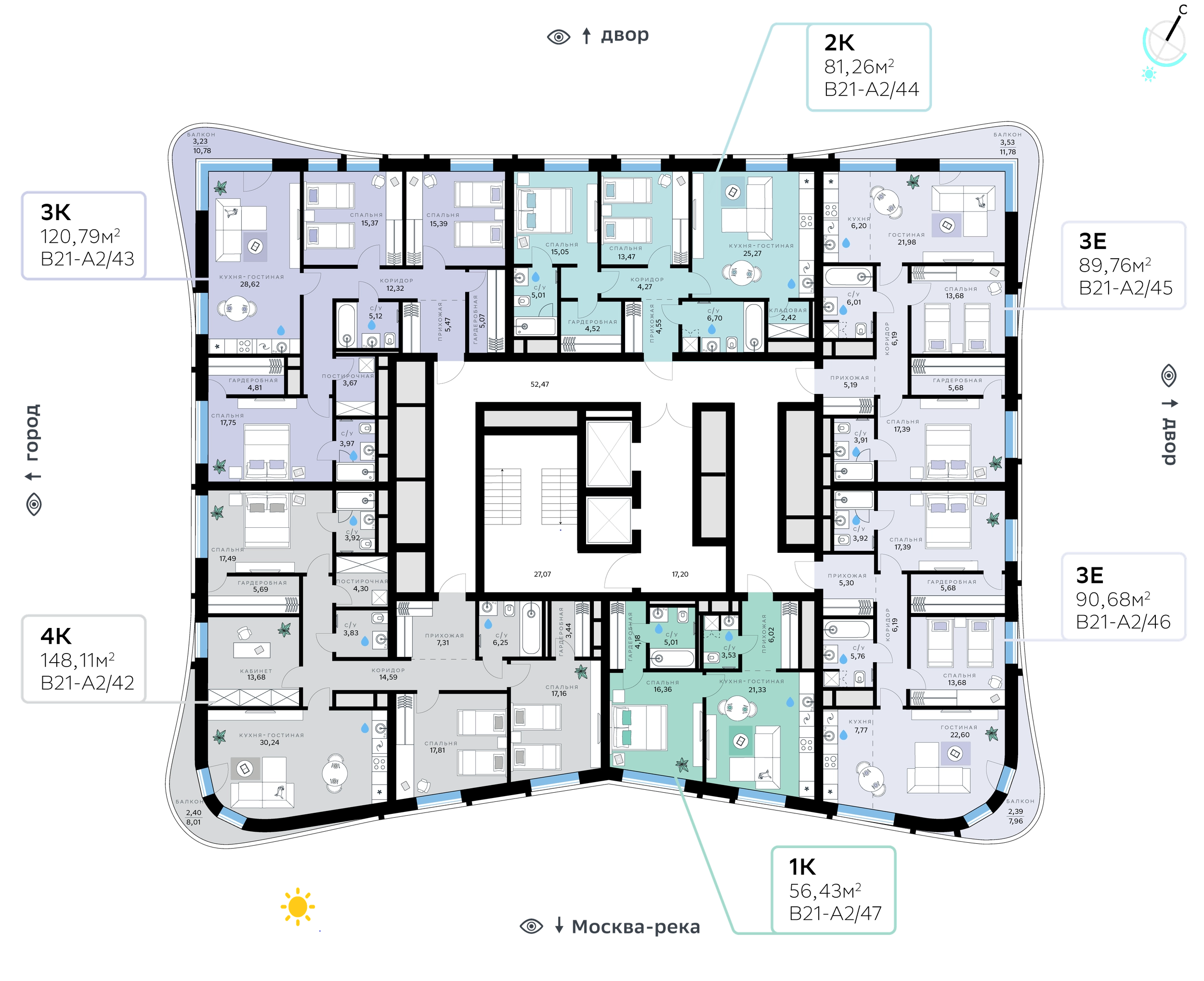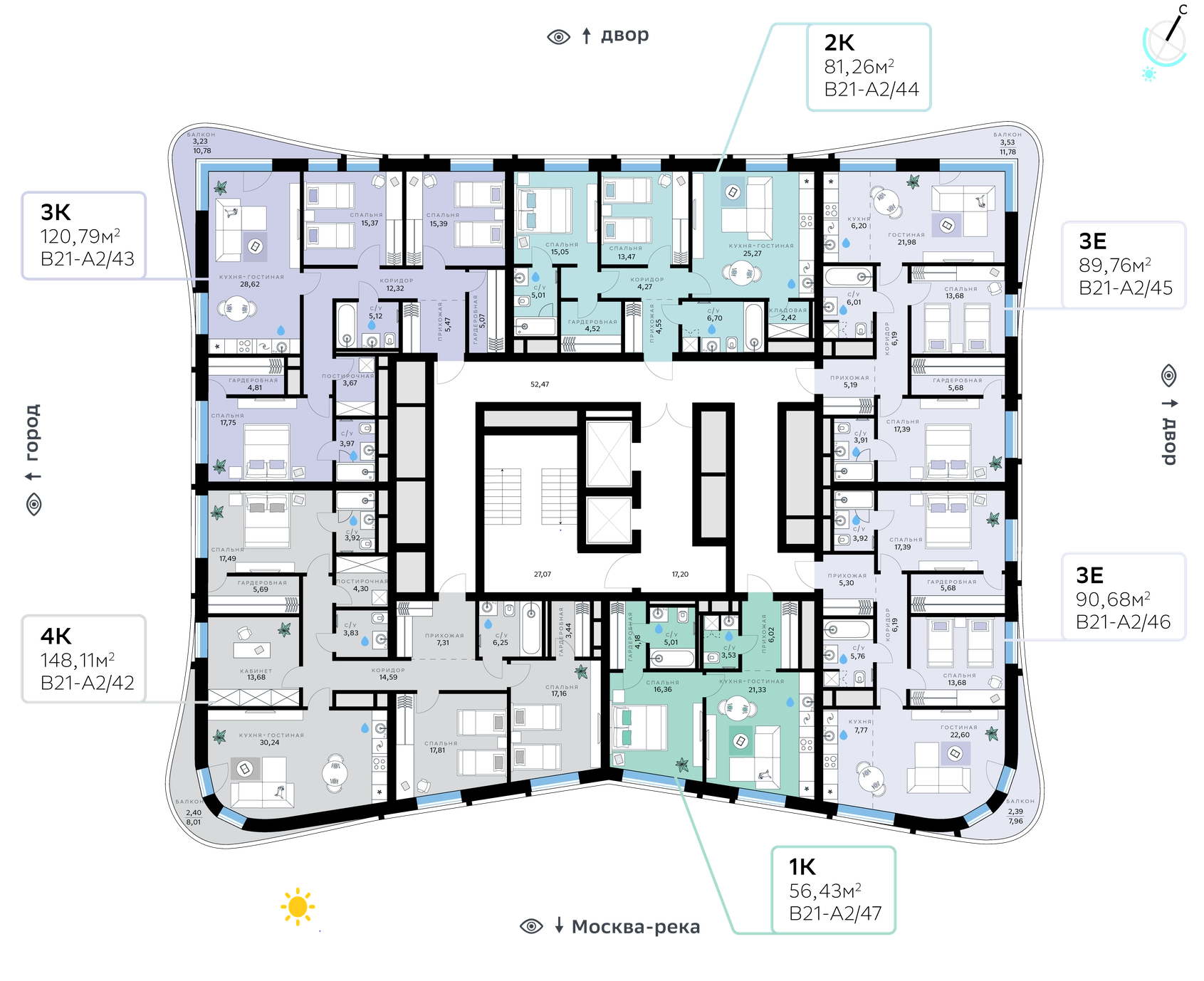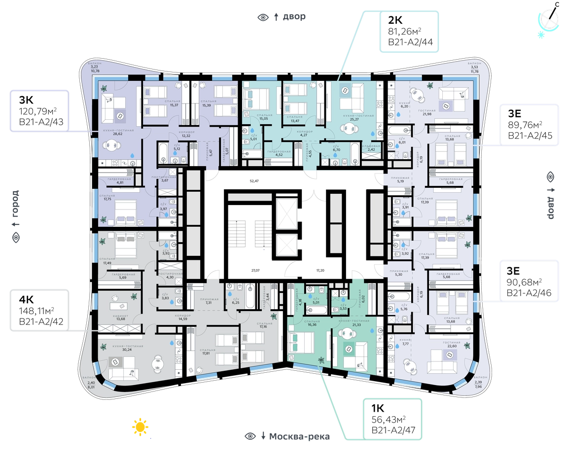 В продаже — двухкомнатная квартира, общей площадью 81,26 кв. м. Квартира расположена на восьмом этаже тринадцатиэтажной секции корпуса класса Адвансд в новом районе СберСити, который строит Сбер. Дом находится на второй береговой линии Москвы-реки.Сочетание элегантной архитектуры от ведущего итальянского бюро и передовых технологий на всех уровнях — от квартиры до инфраструктуры района. Отделка фасадов корпуса класса Адвансд выполнена из природного камня, глазурованной плитки и алюминия.
