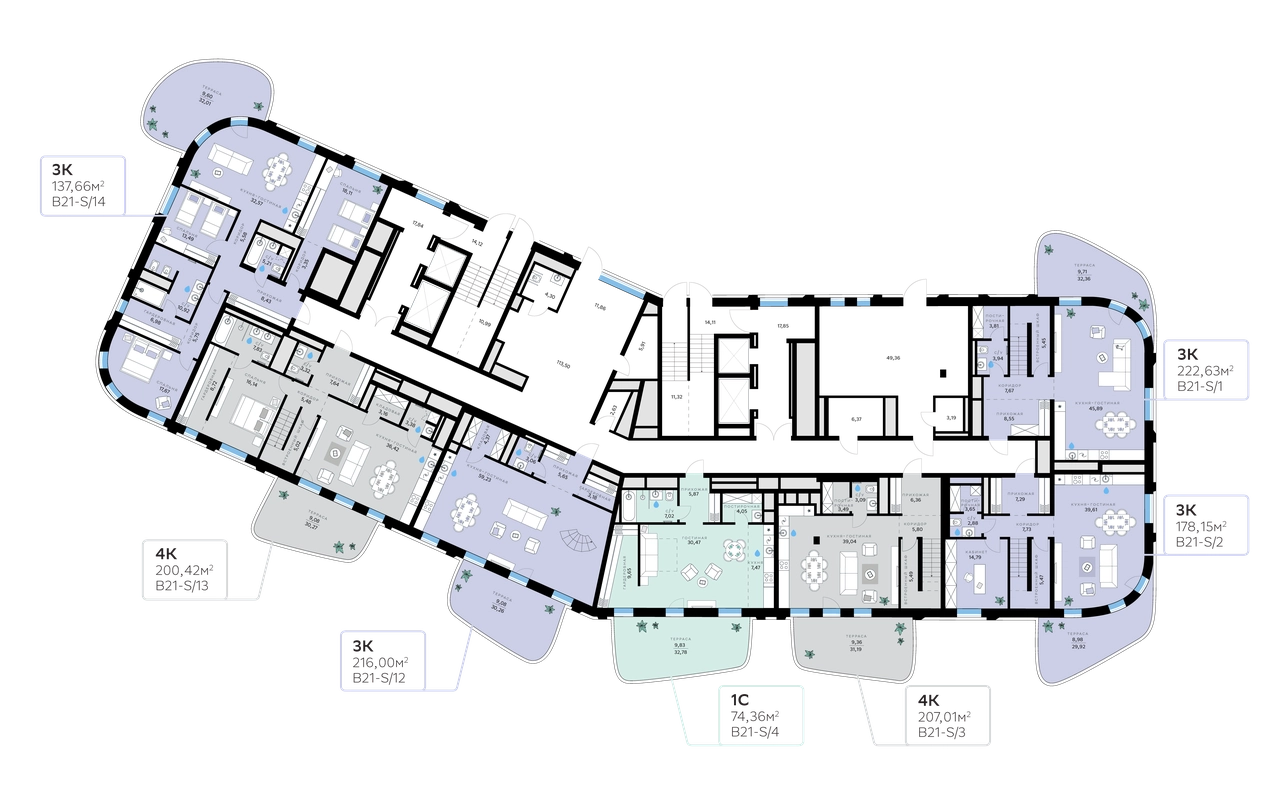 В квартирах предустановлена система «умный дом» — комплекс решений, объединяющий квартиру, дом и прилегающую территорию. Жильцы могут регулировать климат и освещение голосом или со смартфона, выбирая комфортные сценарии для жизни.