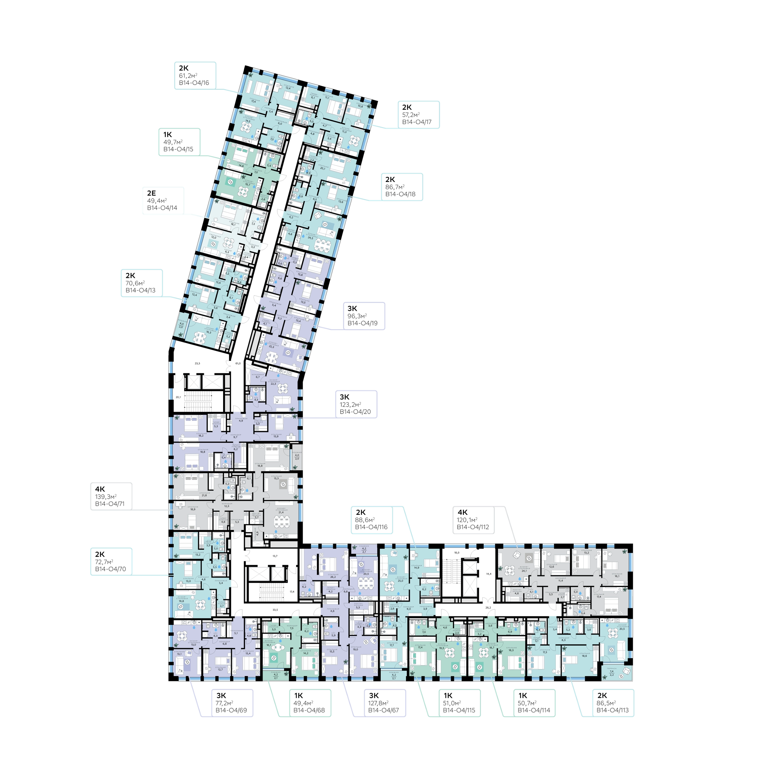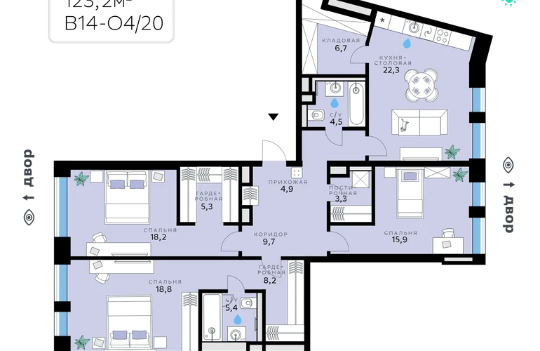 В продаже — трехкомнатная квартира, общей площадью 123,2 кв. м. Квартира расположена на третьем этаже девятиэтажного корпуса Оптимум в квартале В14 нового района СберСити, который строит Сбер.Архитектуру корпусов квартала разработало итальянское бюро. В облике отражена природная палитра: фасады выполнены в тёплой гамме и отличаются геометричной сеткой объёмных элементов светло-бежевого оттенка. За ними скрываются вставки с текстурой под дерево, создающие игру света и тени. Из окон открываются виды на парк и реку, а всего в трёх минутах пешком — набережная. В14 примыкает к главному парку СберСити. В квартале — уютные дворы без машин с крупномерными растениями, кустарниками, многолетними цветами, детскими площадками и зонами отдыха.