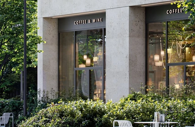 На первых этажах комплекса расположены кафе, магазины, фитнес-студия и другие сервисные объекты.