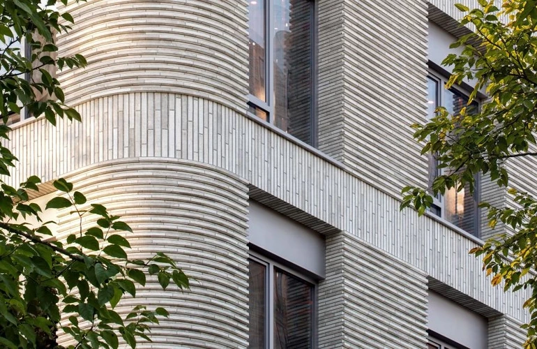 Фасады СТОУН Сокольники оформлены объемной бетонной плиткой с живой фактурой и воздушными алюминиевыми ламелями. Увеличенные оконные проемы позволяют наполнить квартиры светом и открыть виды на парк и старую Москву.