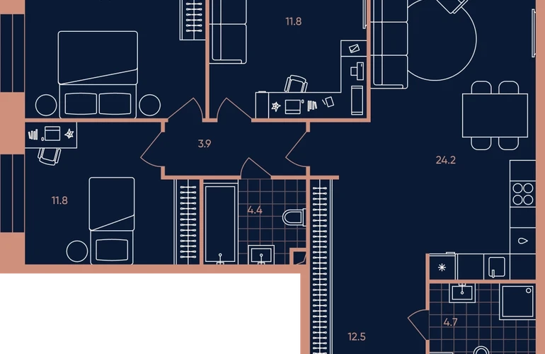• Площадь кухни11,2 м.кв.