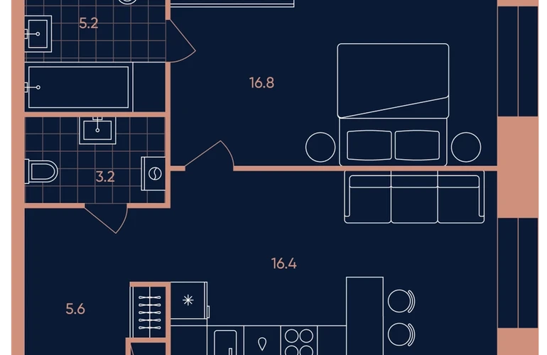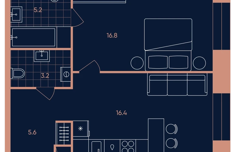 • Площадь кухни11,2 м.кв.